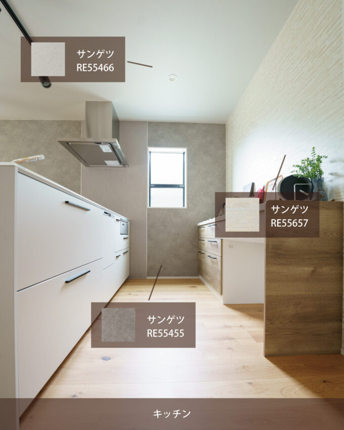汚れも目立ちにくくて、とても万能なカラーだと思います(^^♪キッチンや、リビングなど、長い時間過ごす場所に関してはシンプルなデザインの壁紙を選ぶと、落ち着いて過ごせそうな気がしますね!