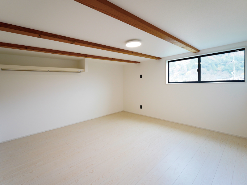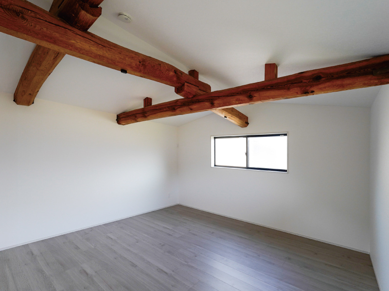 梁を見せることで天井高が上がり、実際の面積以上の開放感を生み出しています。