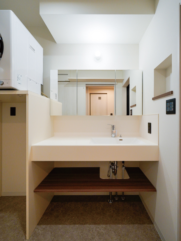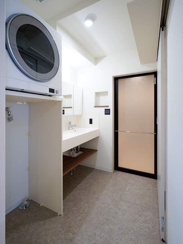 洗面台の横に乾燥機が置けるスペースがあり、洗濯から乾燥までの動線がスムーズです。